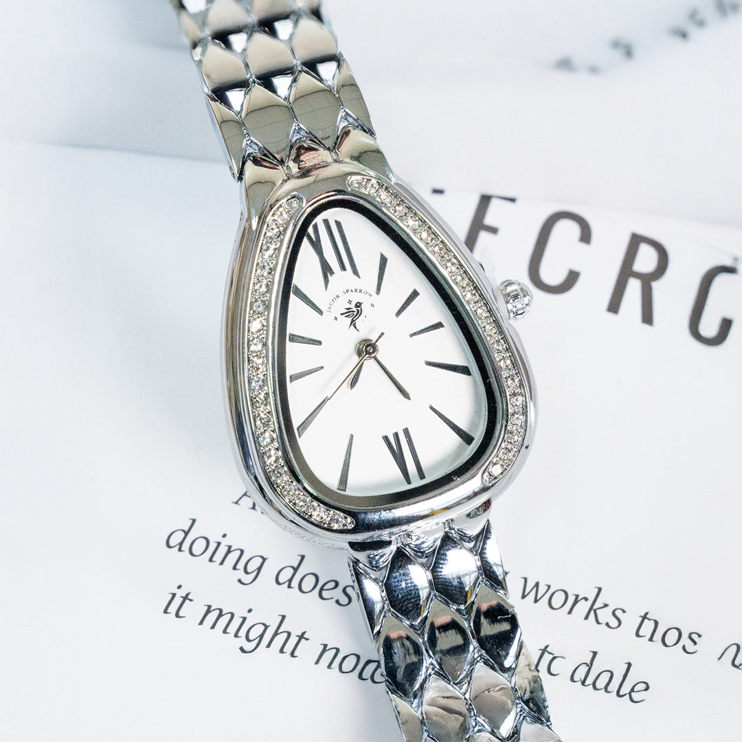 The world of timeless elegance with the Serpent Shine Roman Diamond Watch. This exquisite timepiece, inspired by medieval luxury, features a gilded snake head design that wraps your wrist in opulence.